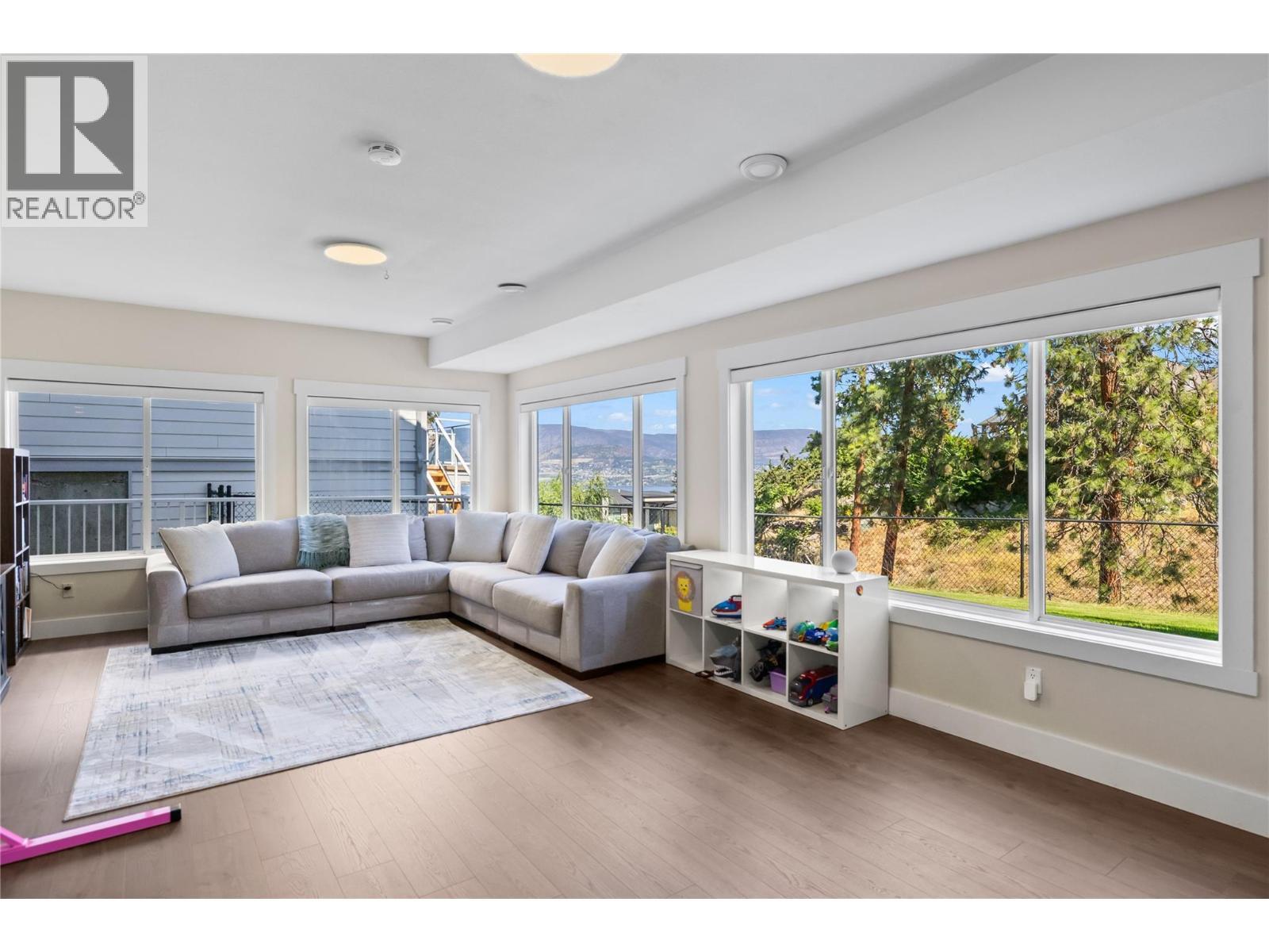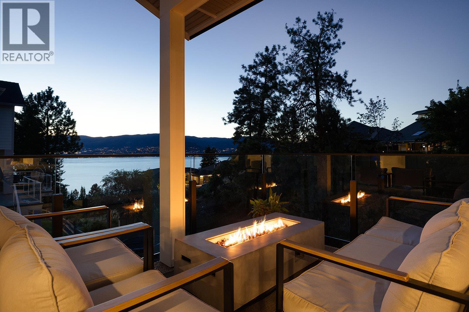 Stunning renovated family home with lake views in sought-after Kettle Valley. The bright, open kitchen features a large island, Jenn-Air stainless steel appliances, modern cabinetry, and a spacious pantry. Enjoy lake views from the kitchen, dining, and living areas with floor-to-ceiling windows and an updated fireplace. Step out to the covered patio for outdoor dining or to relax and watch the sunset. The primary suite offers a walk-in closet and full ensuite with glass shower, double sinks, and a soaker tub overlooking the lake. Two additional bedrooms with built-in organizers, a renovated main bathroom with double sinks, and a redesigned laundry/mudroom with garage access complete the main level. The lower level opens to a private fenced yard with flat lawn areas and a second deck with hot tub and glass railings. Inside, the bright basement features a large family room, theatre room, rec room, two bedrooms, and a full bathroom—ideal for guests or family. Walking distance to Chute Lake Elementary, Kettle Valley Village shops, and Quilchena Park. Move-in ready and perfect for families looking for space, style, and views. (id:6769)