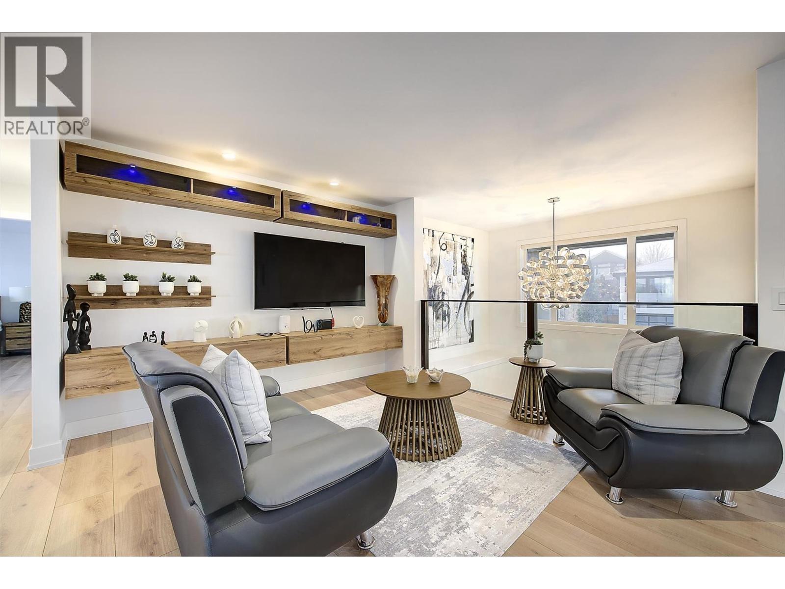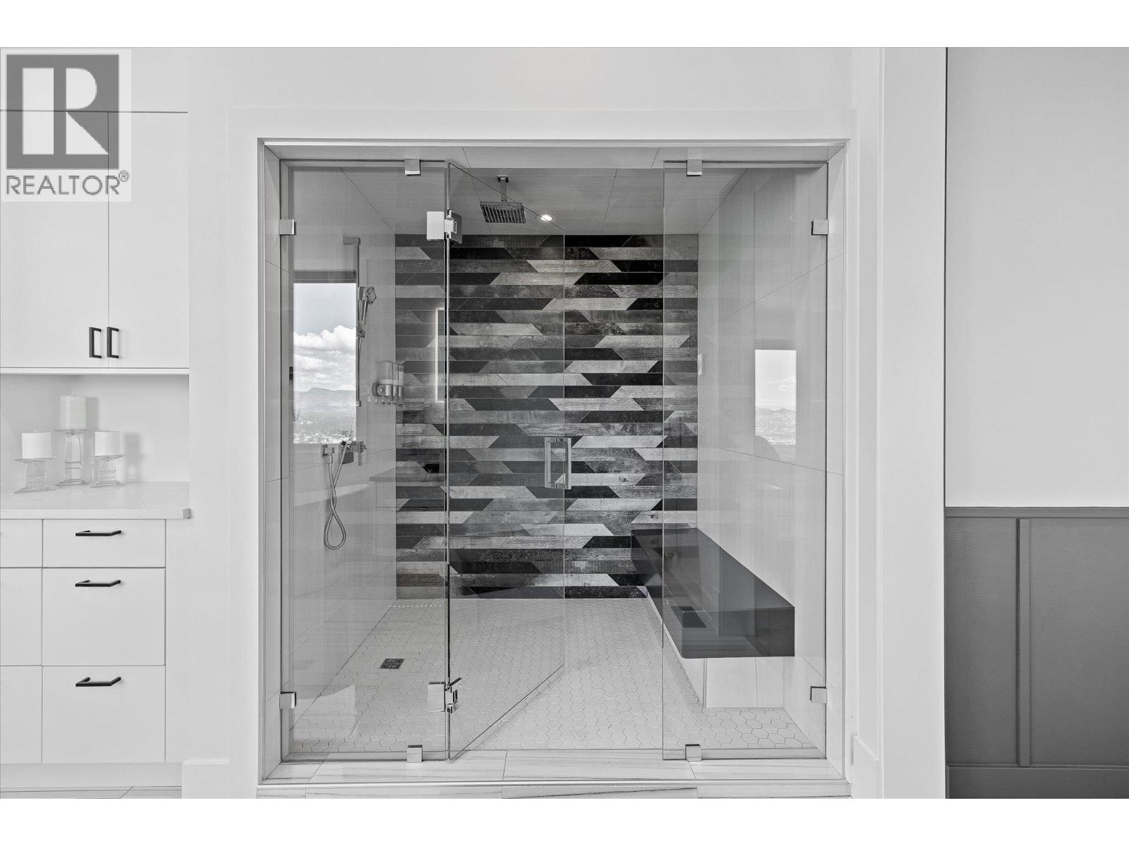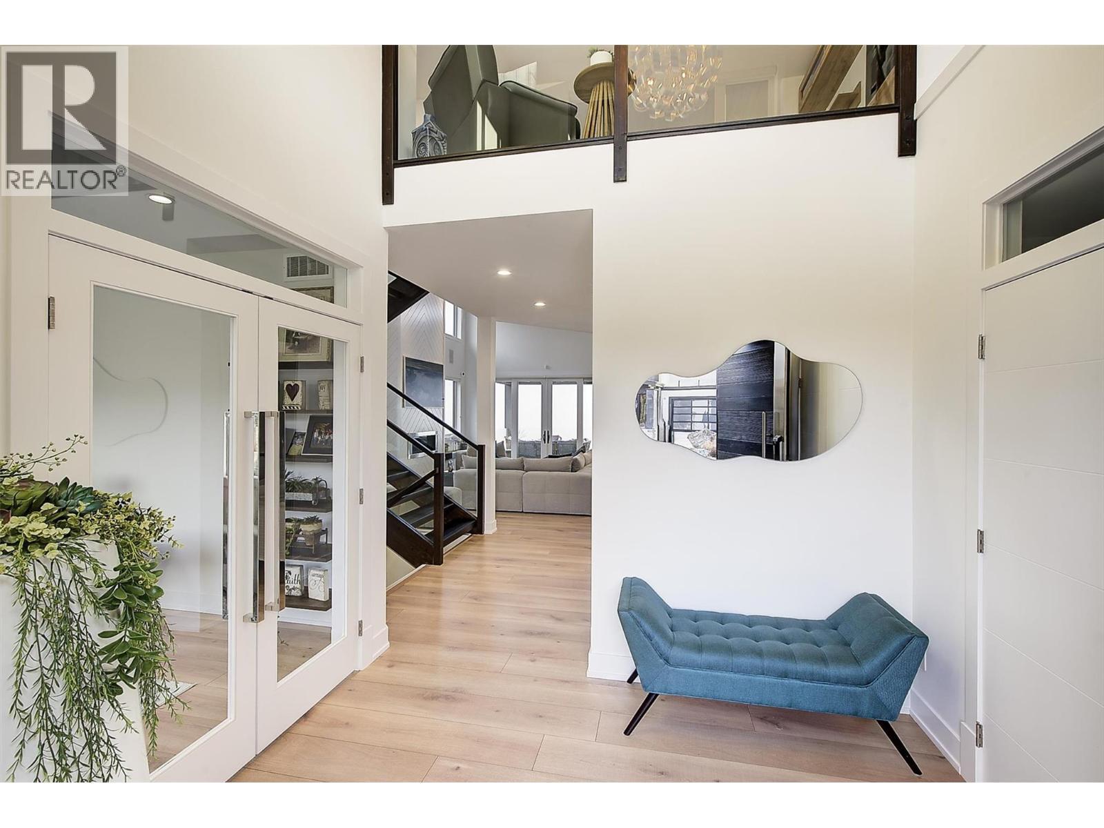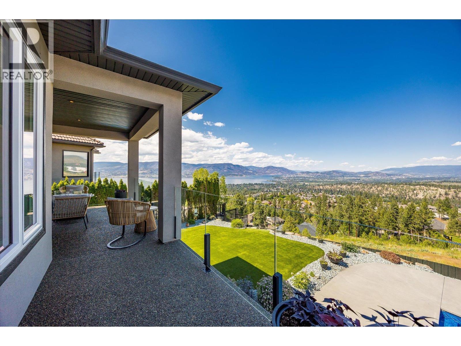 Step into elevated living in this beautifully re-imagined 5-bed + den, 4-bath residence, where luxury, comfort, and panoramic views converge. From the moment you arrive, the grand entry and soaring vaulted ceilings set the tone for a home designed to impress, while the chef’s kitchen, featuring premium appliances and a butler’s pantry, anchors the heart of the main level with style and function. Expansive windows frame breathtaking 180-degree vistas across the city of Kelowna and Okanagan Lake, creating an extraordinary backdrop for everyday living and entertaining. The primary retreat, privately positioned on the main floor, offers a serene escape complete with stunning lake views and a spa-inspired ensuite. Two additional spacious bedrooms upstairs offer comfort and privacy for family and guests. The walk-out lower level is an entertainer’s haven, thoughtfully designed with a refined whiskey tasting room, temperature-controlled wine cellar, sleek bar, generous recreation space, and a state-of-the-art theatre. Step outside to the private backyard and pool area, where the views become more spectacular and unforgettable. Completing this exceptional home are four garage spaces, including a double and tandem garage, with EV charging and abundant room for a boat or RV, along with extensive additional parking for guests. Every element of this residence blends elegance with practicality, offering an unparalleled lifestyle opportunity in one of Kelowna’s most desirable settings. (id:6769)