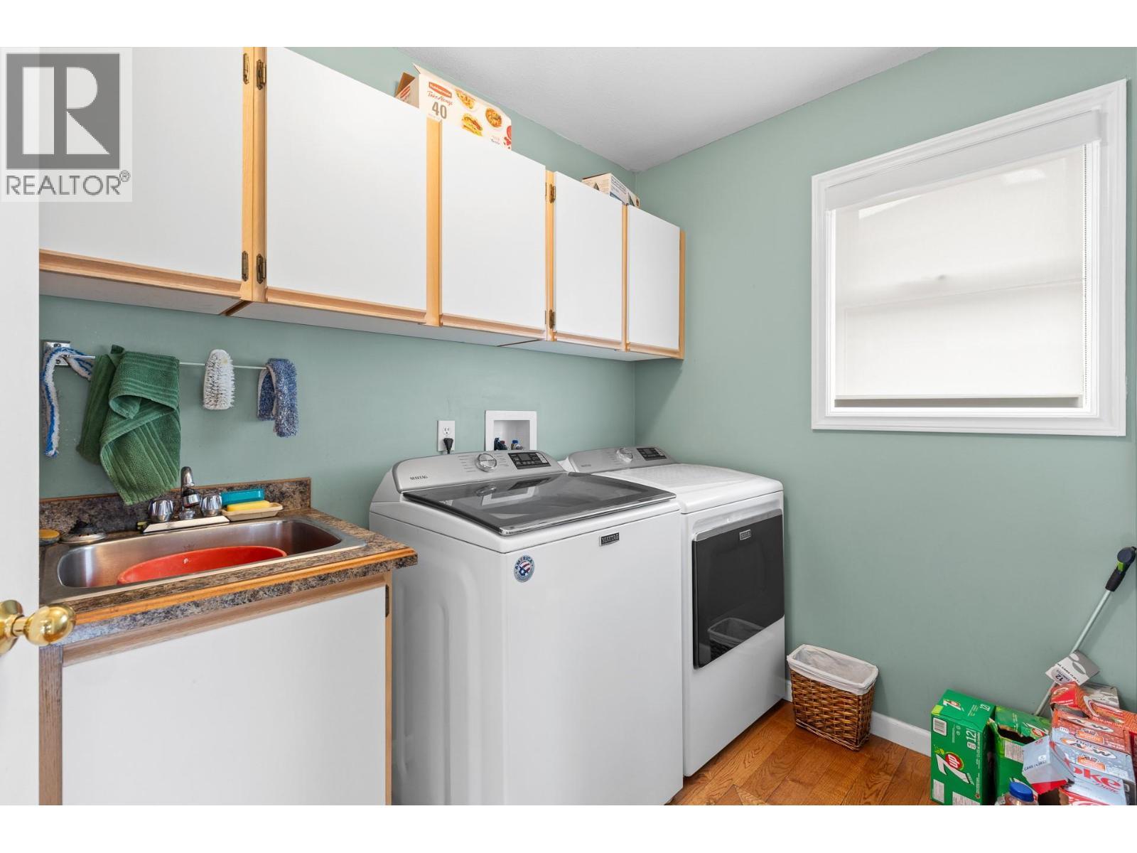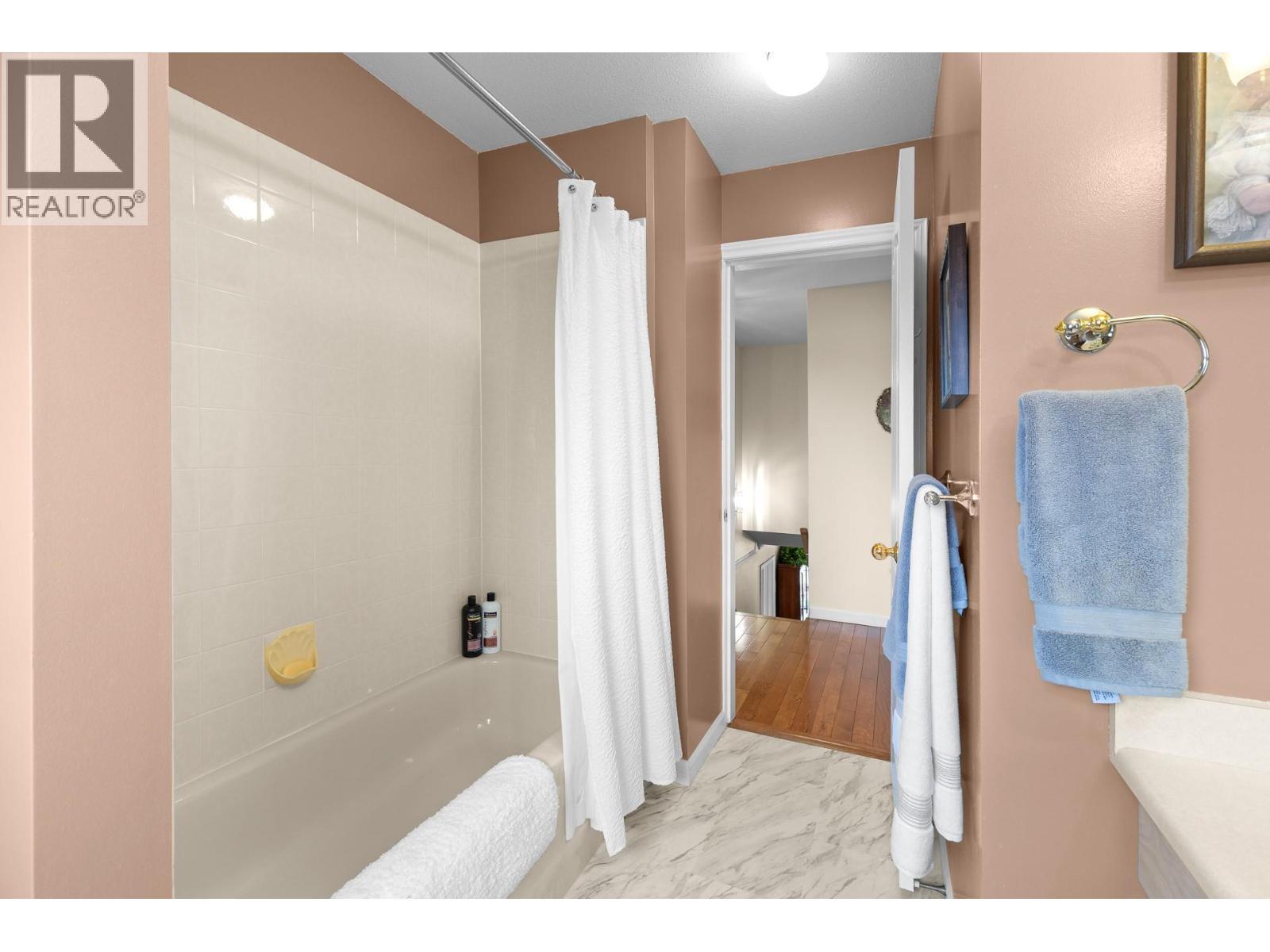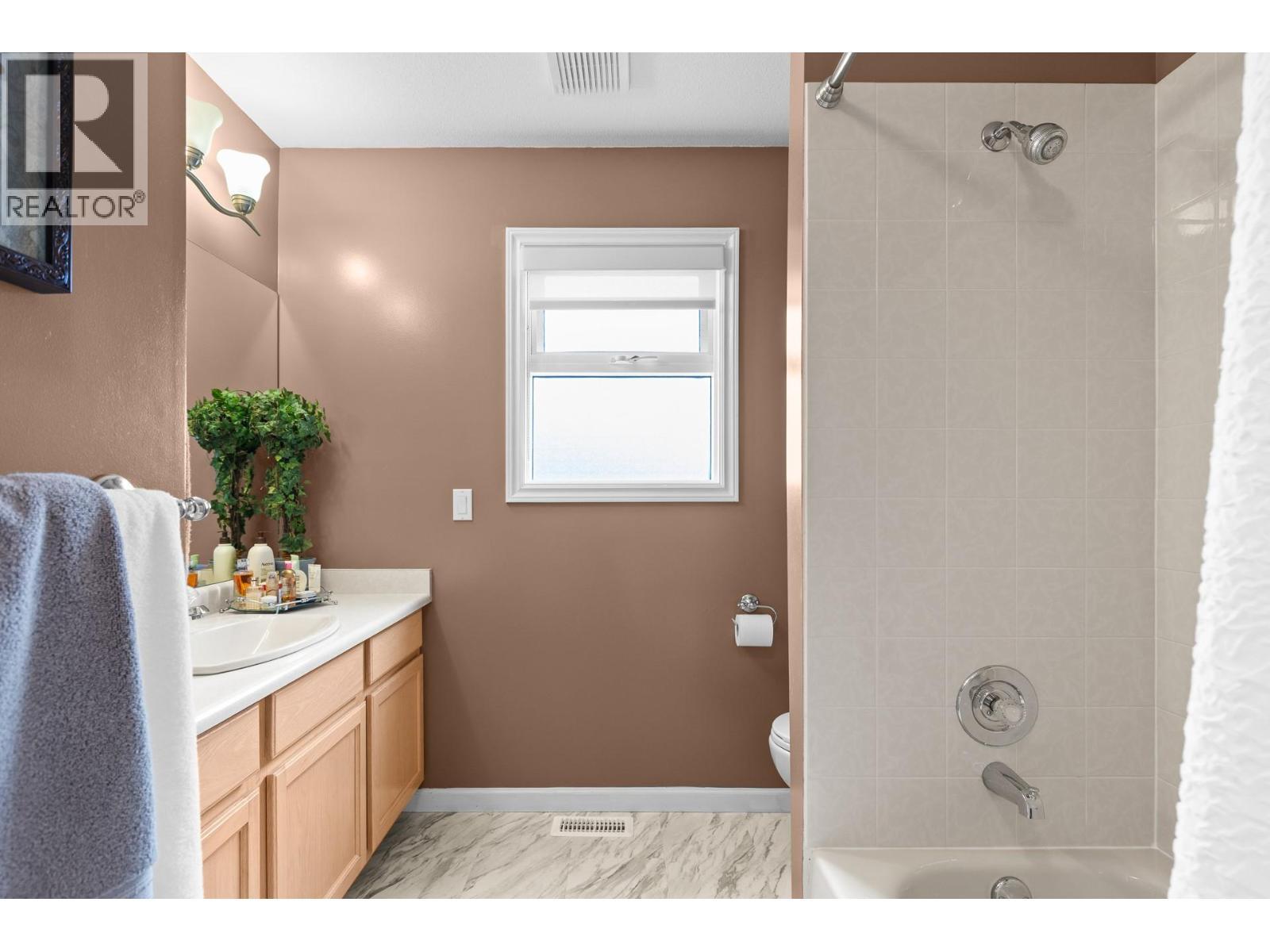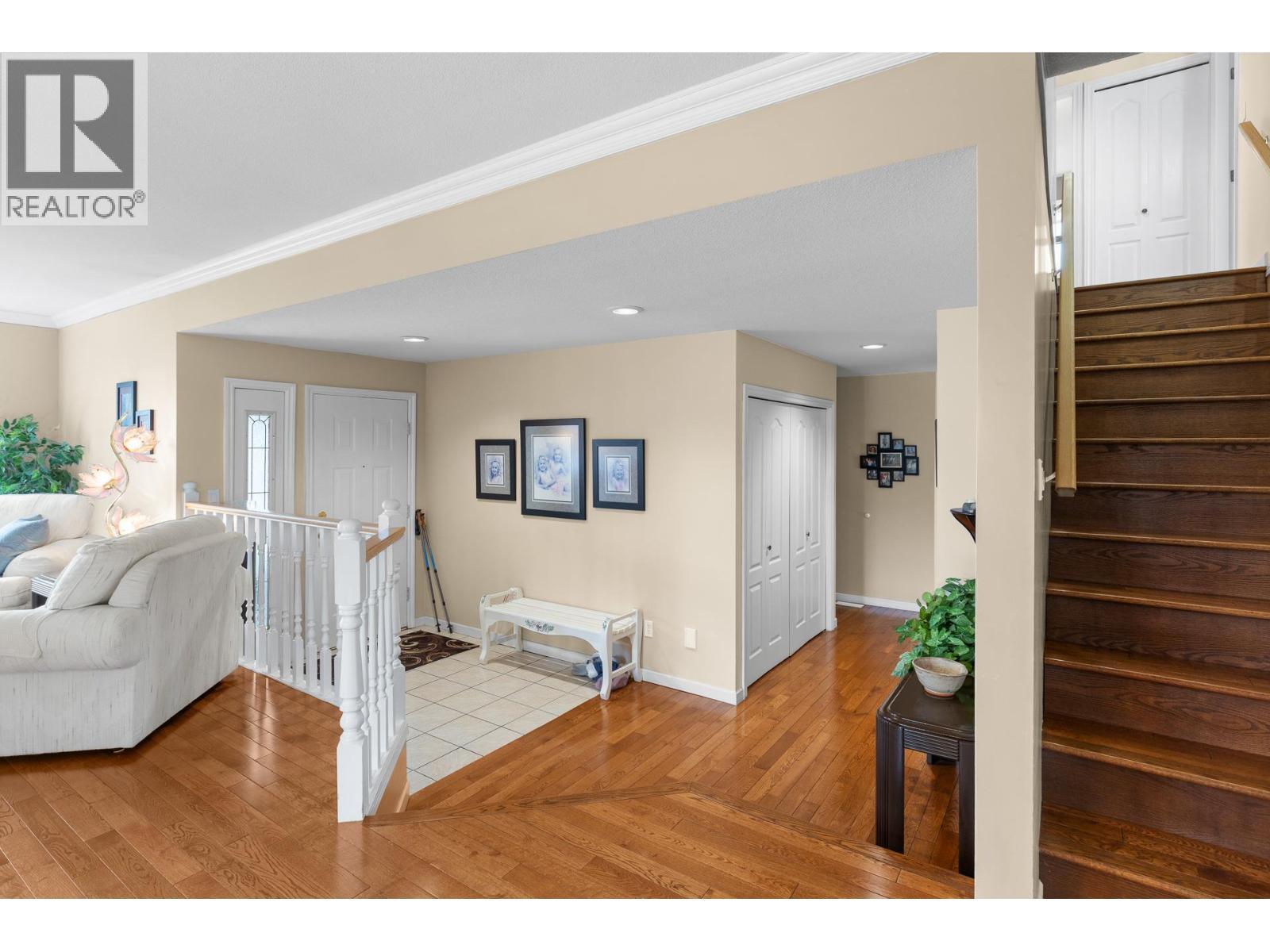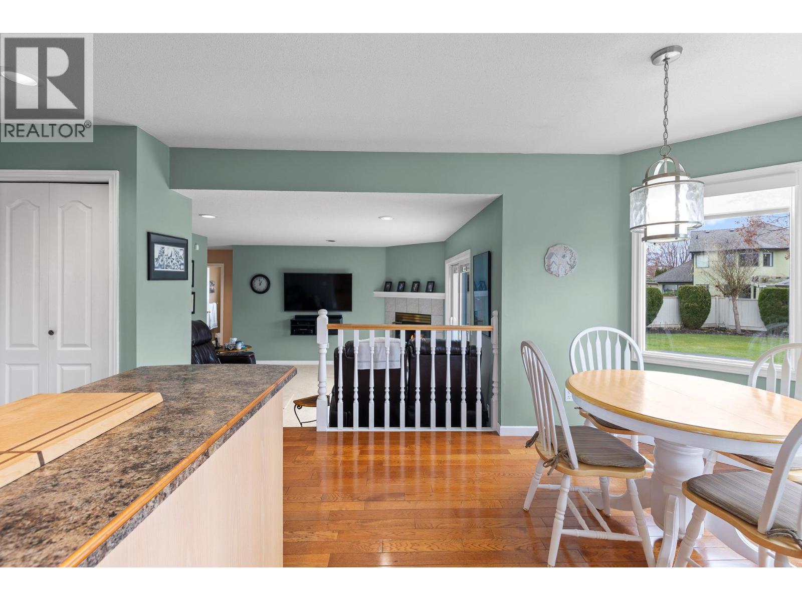 Located at the end of a quiet cul-de-sac in one of Kelowna’s most desirable Lower Mission neighbourhoods, this beautifully maintained two storey home sits on an oversized, flat 0.22-acre lot and reflects decades of pride of ownership. Just a short walk to Okanagan Lake and nearby beaches, and close to the H2O Adventure + Fitness Centre, Capital News Centre, shopping, coffee shops, the Pandosy district, and Okanagan College. The home offers approximately 2,300 square feet of warm, inviting living space, featuring hardwood flooring throughout the main level and staircase, with vinyl flooring in the bathrooms. The bright kitchen opens to the dining area and overlooks the backyard, while the adjoining family room is anchored by a cozy gas fireplace, creating a welcoming space ideal for entertaining or keeping an eye on children while cooking. Large sliding doors connect the living space to the patio for easy indoor-outdoor flow. Upstairs, the bedroom layout includes a generous primary bedroom with ensuite and walk-in closet, offering comfort and functionality for a variety of lifestyles. The backyard is expansive and private, framed by mature cedar hedging and landscaped grounds, with a seven-zone underground irrigation system. The yard is fenced around the perimeter while remaining open where it meets the home. Additional features include a 16 x 10 electric awning, an 8 x 10 storage shed, double car garage, and a hot water tank replaced roughly three years ago. (id:6769)