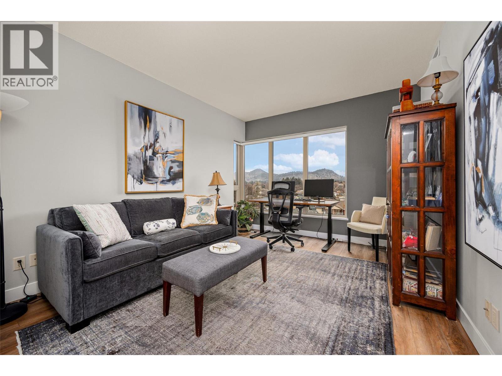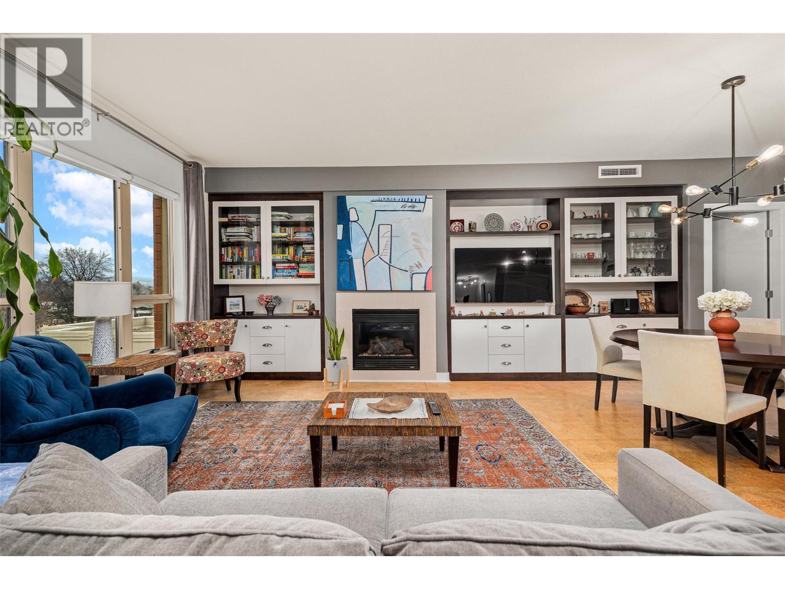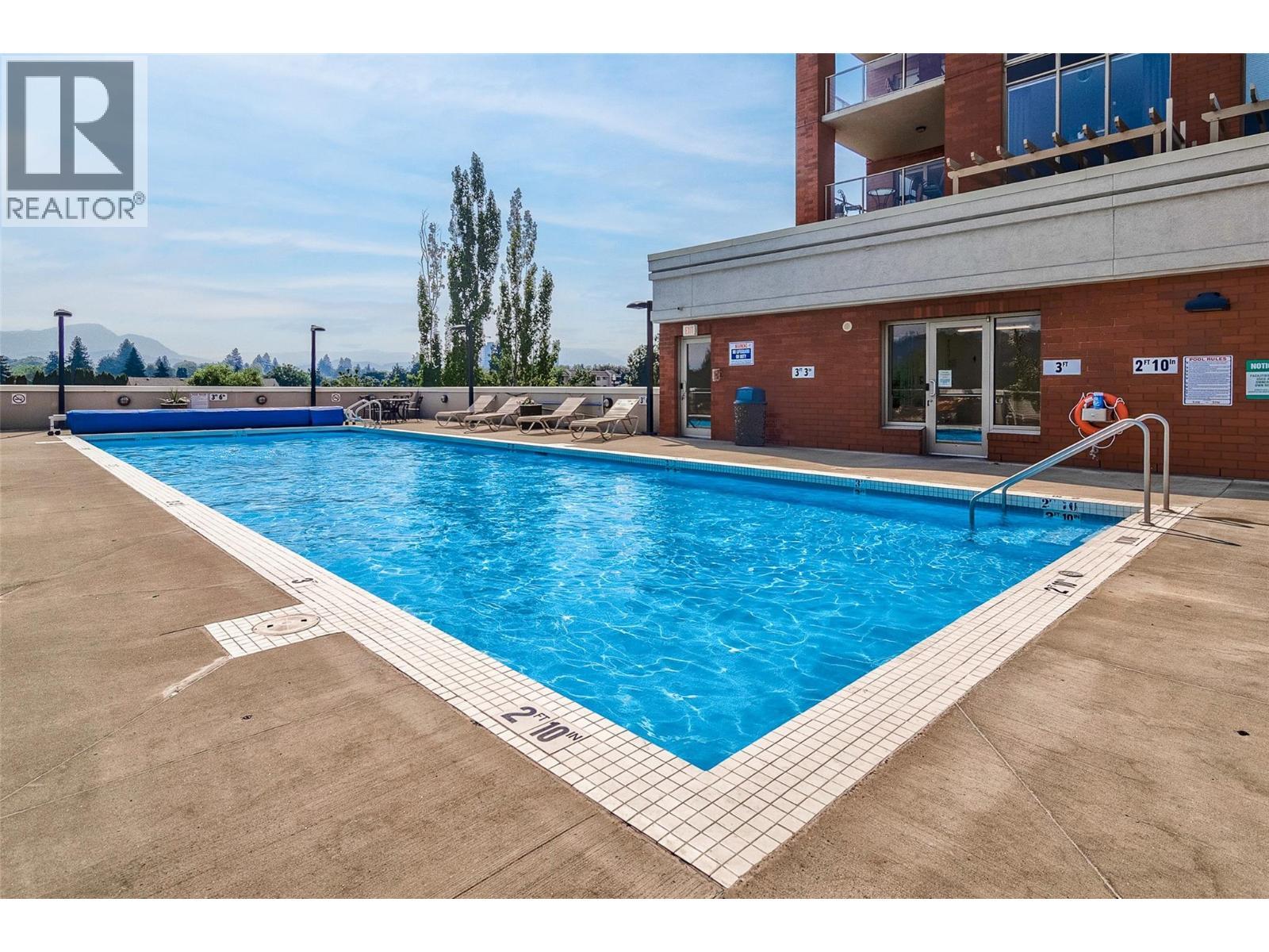 Exceptional interior space is rarely found downtown, and this 1,506 sq ft condo delivers comfort, functionality, and walkable urban living in one impressive package in Kelowna North. This 2 bed + den/ 2 bath condo features an ideal split-bedroom layout, providing excellent privacy with bedrooms, bathrooms, and walk-in closets positioned on opposite sides of the home. The open living and dining area is anchored by a custom wall-to-wall entertainment centre, while updated scratch- and sound-proof vinyl flooring adds durability throughout the bedrooms. Located on the quiet, east-facing side of the building, the home enjoys peaceful mountain views and a comfortable patio ideally away from traffic and major intersections. Additional upgrades include custom closet cabinetry, built-in foyer storage, updated lighting, newer paint through out, a quiet Bosch dishwasher, and a newer washer and dryer. The home includes TWO covered parking stalls and a storage locker, along with resort-style strata amenities including a 60’ outdoor pool, hot tub, sauna, steam room, and gym. Set in the Centuria Urban Village building, you’re steps to downtown restaurants, cafes, beaches, fitness studios, public transit, a grocery store within the complex and so much more. This is downtown condo living without compromise. Contact us today & book your private showing today, this one won’t last long! (id:6769)