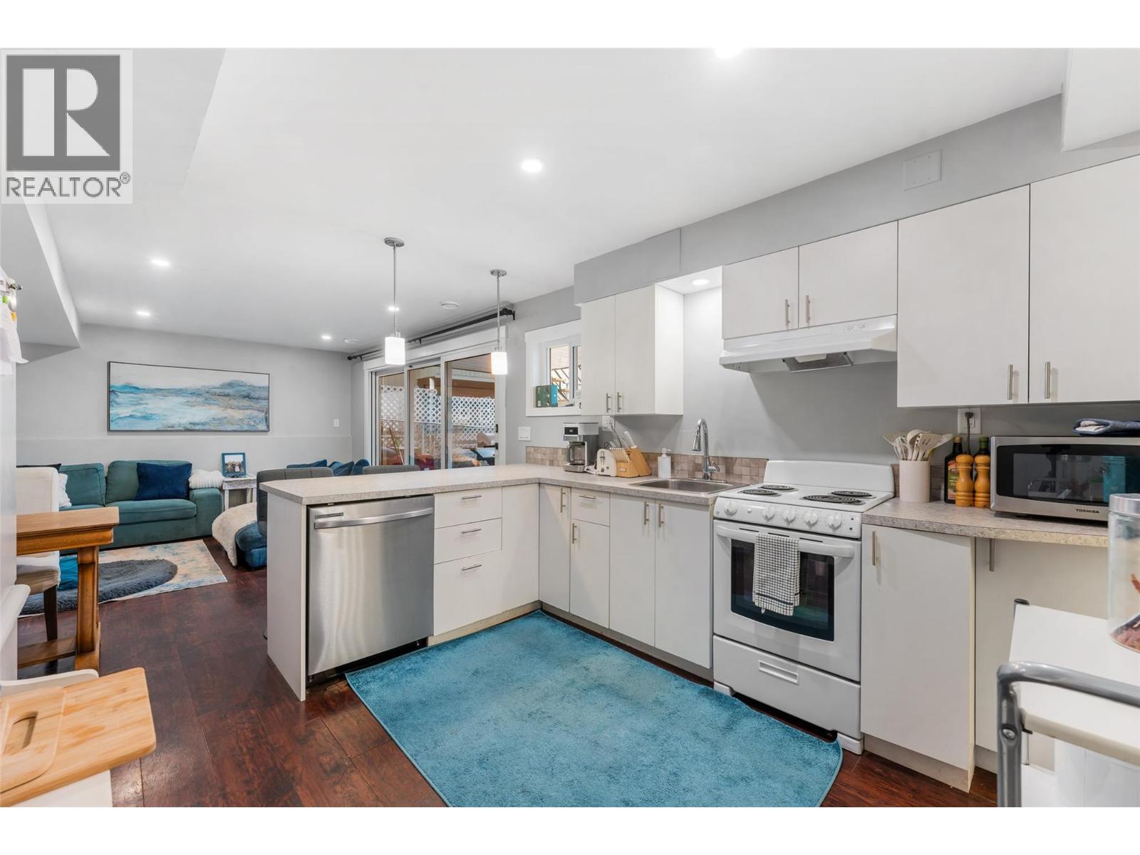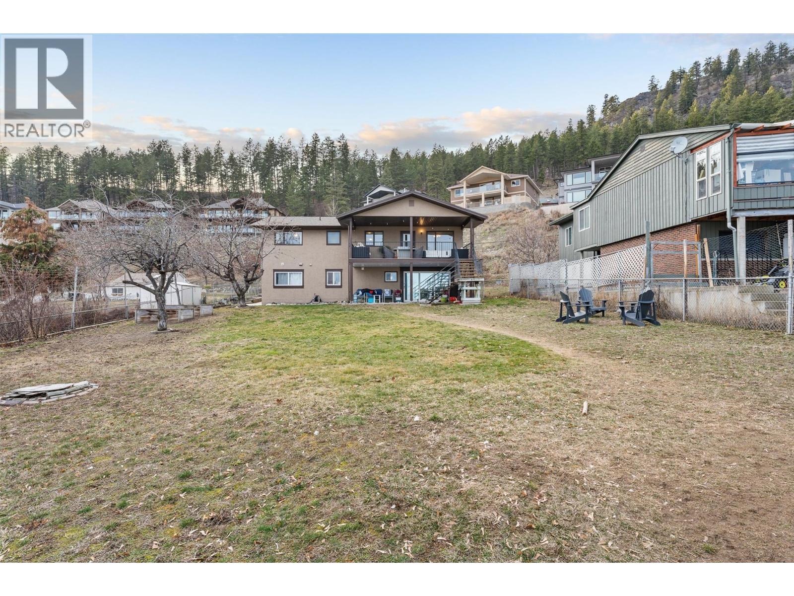 Beautiful lake and mountain views from this well-maintained home offering flexible living in a convenient Peachland location. Just minutes from Peachland’s waterfront, amenities, and transit, the property blends everyday comfort with the natural beauty of the Okanagan. The main level features a bright open-concept design with hardwood floors and large windows that capture views of the surrounding mountains and Okanagan Lake. The kitchen is designed for both function and gathering, with white shaker cabinetry, stainless steel appliances, a central island with wood countertop, and a window above the sink overlooking the backyard and lake. The dining area flows seamlessly to the covered upper deck with a gas BBQ hookup and stairs leading to the backyard perfect for enjoying Okanagan outdoor living. The main floor offers two bedrooms and two bathrooms, including a spacious primary retreat with a private three-piece ensuite. A large third bedroom located on the lower level completes the main home’s living space. Downstairs, a two-bedroom, one-bathroom in-law suite provides excellent flexibility for extended family or guests. The suite includes access to a covered patio and fenced backyard. Additional highlights include 200-amp electrical service, a natural gas furnace, central A/C, a double garage, and parking for up to four vehicles. With scenic lake views and a location just minutes to Peachland’s waterfront, this home offers exceptional value in the heart of the Okanagan. (id:6769)