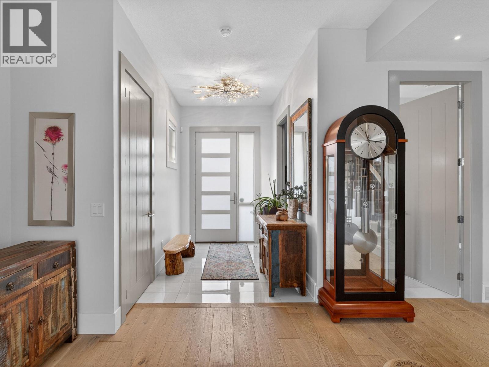 This upscale residence offers the space and privacy of a home with the convenience and low maintenance of a townhome or condo. Situated on a desirable corner lot just steps from the lake, this sophisticated 3 bedroom, 3 bathroom property blends thoughtful design with quality craftsmanship by Hundal Homes. The main level features soaring 10 ft ceilings, 8 ft doors, and an open concept layout that creates a bright and inviting living space. The chef inspired kitchen is designed to impress with granite countertops, heated tile floors, a large island, built in Frigidaire refrigerator/freezer, and a 36-inch dual fuel gas range. The living room is anchored by a cozy gas fireplace, while a main floor office provides the perfect work from home space. Upstairs, the spacious primary suite offers a relaxing retreat with a luxurious ensuite, accompanied by two additional bedrooms, a stylish full bathroom, and convenient upper-level laundry with granite folding counter. All bedrooms include ceiling fans for added comfort. Additional highlights include 4 legal parking stalls, a heated detached garage, central air, instant hot water, central vacuum, built in 4-zone sound system, custom Christmas lights and video surveillance. Location can’t be beat. Enjoy beach access at the end of the street and easy walking distance to the hospital, and downtown amenities. (id:6769)