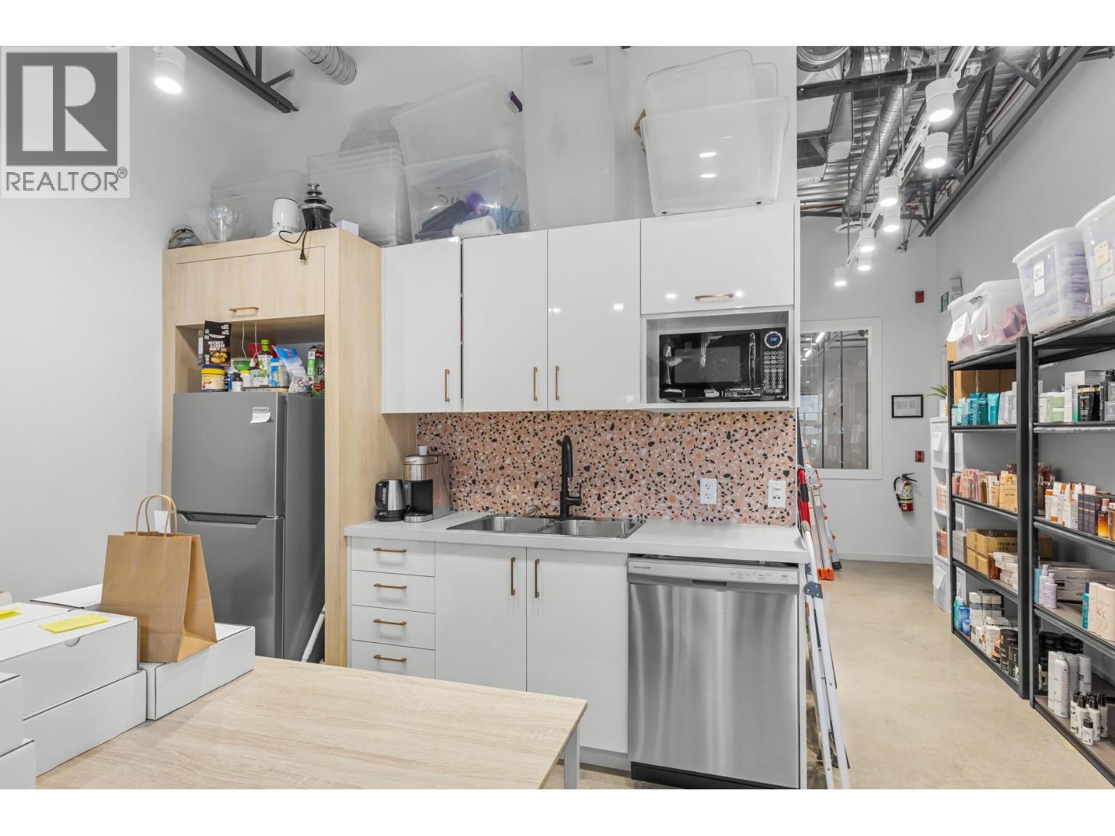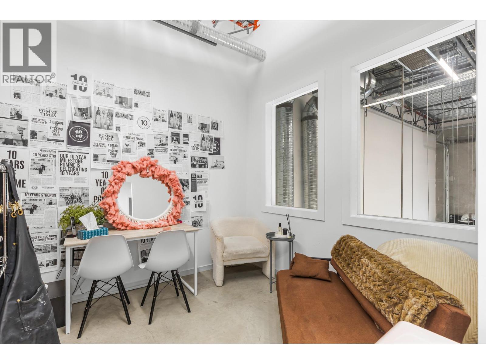 Opportunity to acquire 1,914 sq.ft. (1262 sq.ft ground level and 652 sq.ft mezzanine) of flexible industrial strata space at Powerhouse, developed by PC Urban. Located between Clement Road and Vaughan Avenue, the unit offers strong exposure and prominent signage potential. Zoned I1 – Light Industrial, with a text amendment permitting a broad range of additional uses including office, professional services, health services, personal service establishment, retail, liquor primary establishment, education services, and other permitted I1 principal uses. The premises include a high-quality existing build-out designed by Hatch Interior Designs for a hair salon concept, providing functional improvements and underlying value for potential purchasers. Features include 22-foot ceiling heights, one 10’ x 12’ grade-level overhead door, enclosed +/- 652 sq.ft. mezzanine with 50 PSF load capacity, kitchenette, and two washrooms. Two reserved parking stalls are included, with additional free street parking available along Vaughan Avenue. (id:6769)