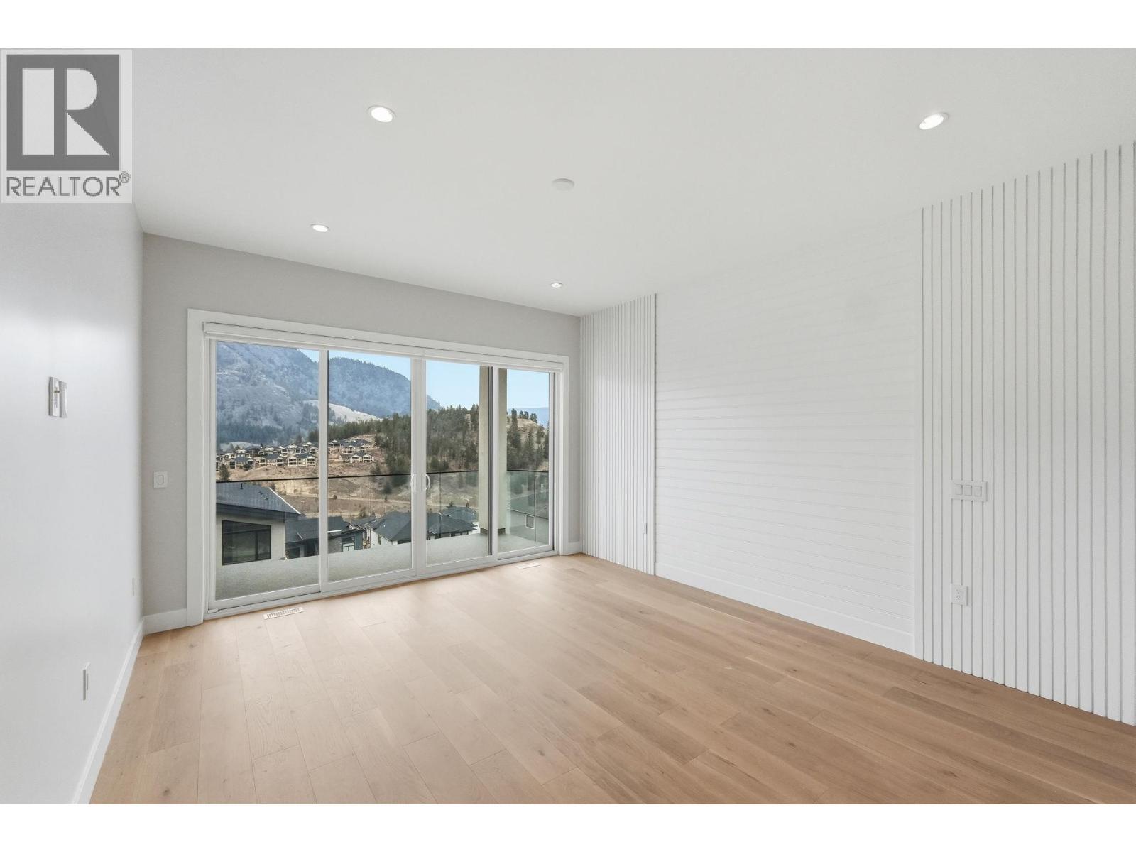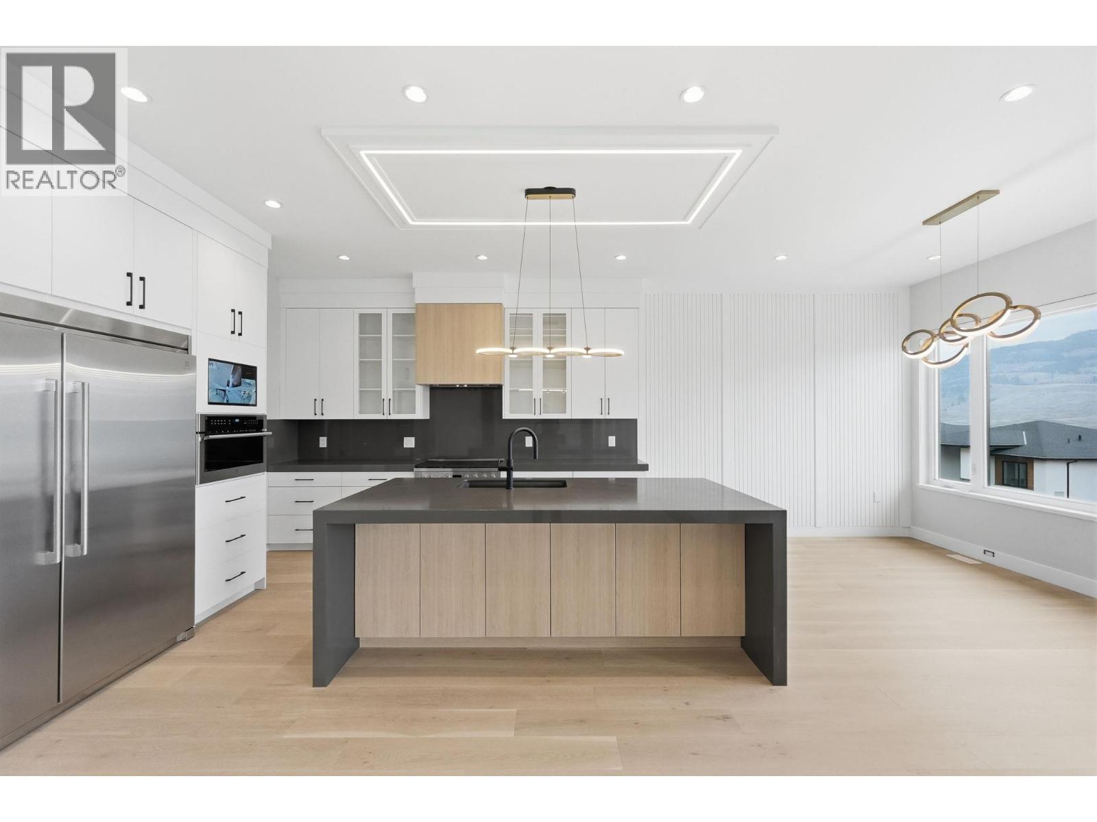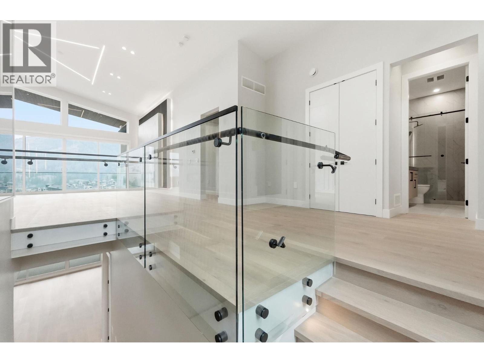 Perched on the hillside in desirable Black Mountain, this exceptional 6-bedroom, 4-bathroom residence offers stunning valley views, thoughtful design, and modern luxury throughout. Expansive windows flood the home with natural light, complemented by elegant lighting selections that allow you to set the perfect atmosphere day or night. The main living area features engineered hardwood flooring and a beautifully designed chef’s kitchen equipped with premium Electrolux appliances, a gas range, and an oversized chef’s refrigerator. A fully equipped spice kitchen provides additional space for cooking and entertaining while keeping the main kitchen pristine. Upon entry, a striking custom glass display above the staircase, crafted with a single joint, creates a dramatic focal point and enhances the home’s open feel. The layout flows seamlessly from the kitchen and living area onto a balcony with its own fireplace which is perfect for enjoying Okanagan evenings. Downstairs offers a spacious second living area, two additional bedrooms, and an impressive 23 ft x 23’6” theatre room complete with a built-in bar. The property also includes a private 2-bedroom suite currently rented for $2,000 per month, positioned along the side of the home to maximize privacy. Additional features include a double garage with epoxy flooring, irrigated landscaping, a generous backyard, and the added benefit of GST being paid by the seller. (id:6769)