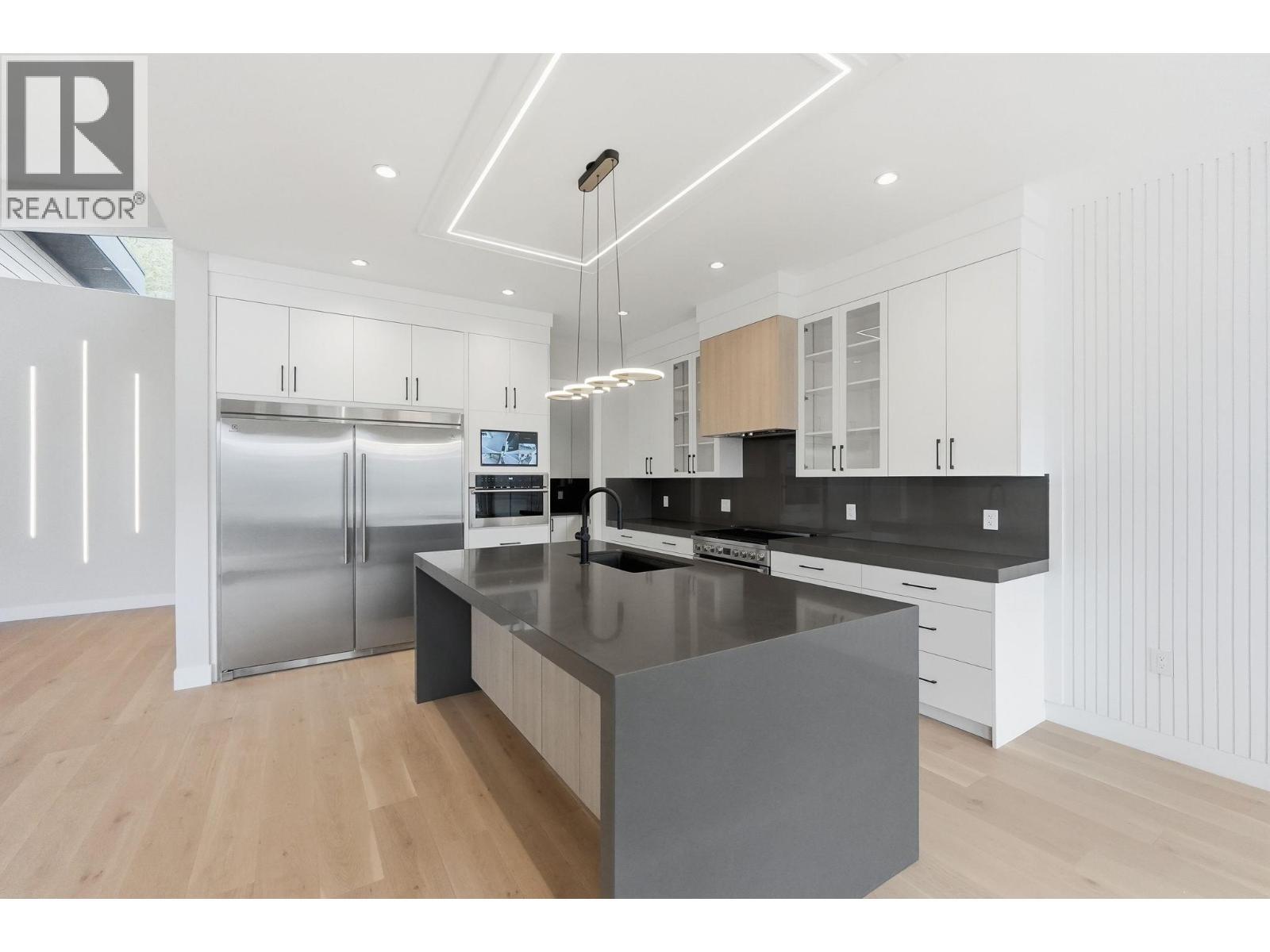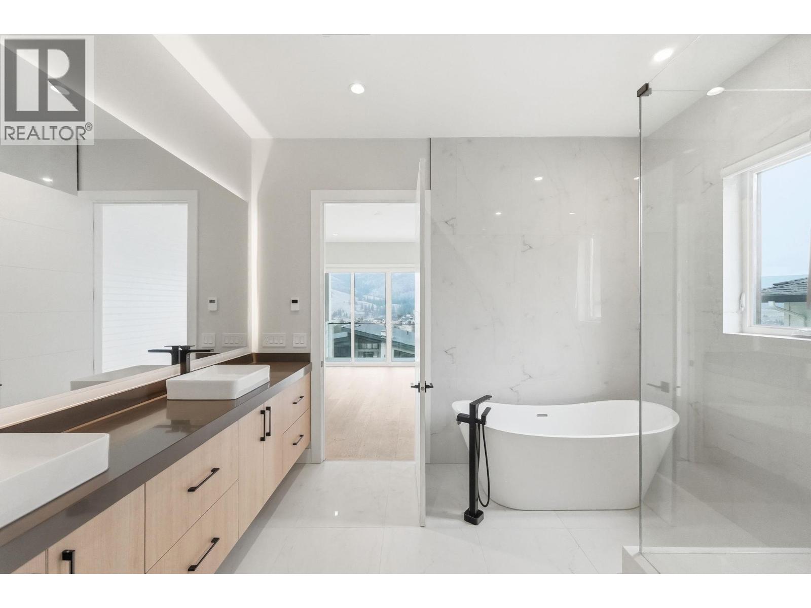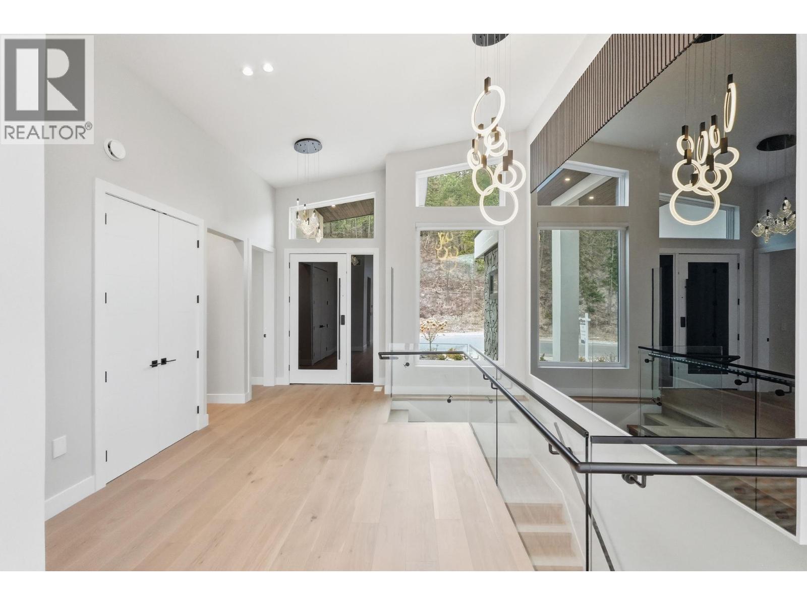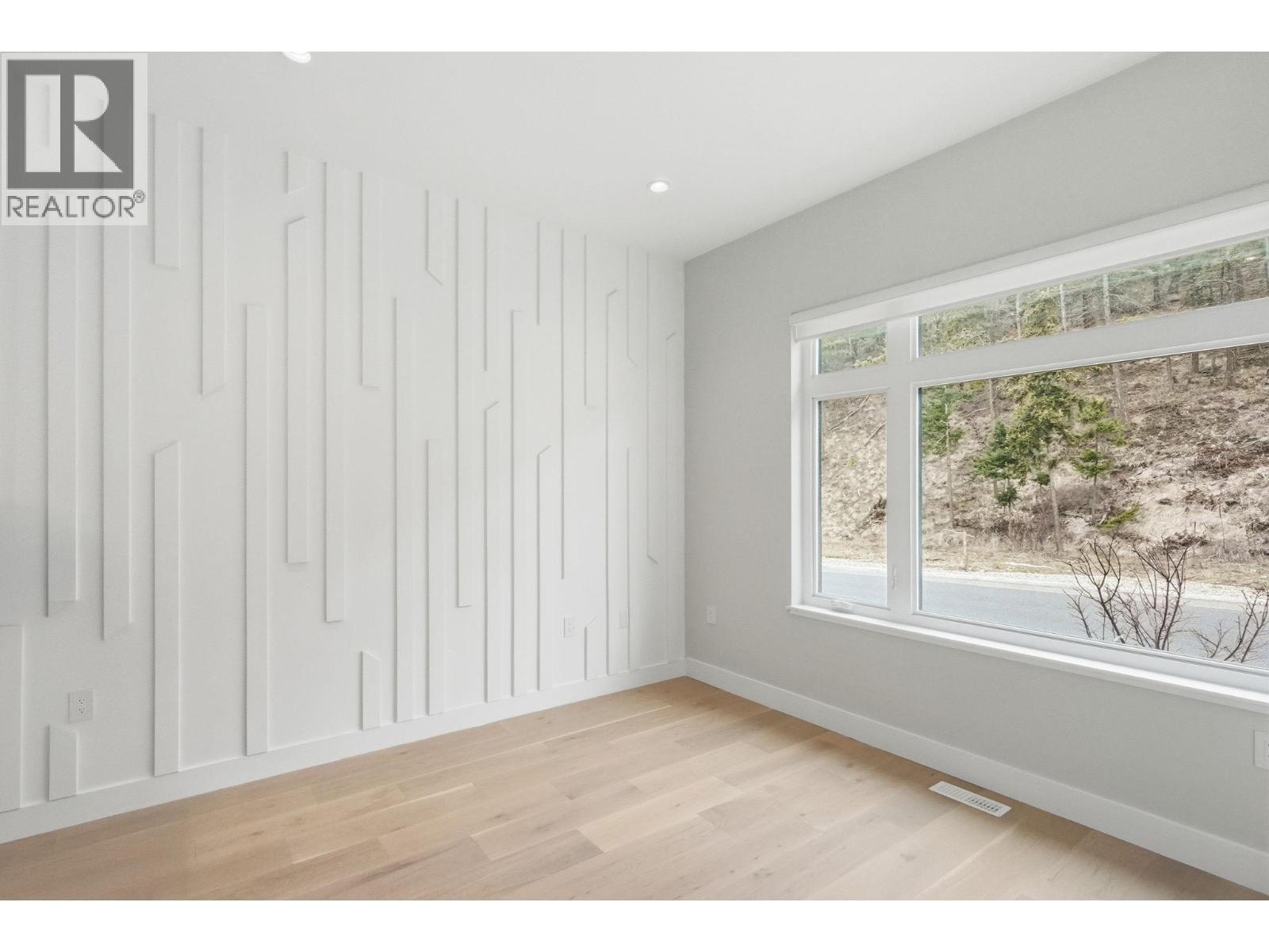 Perched on the hillside in desirable Black Mountain, this exceptional 6-bedroom, 4-bathroom residence offers stunning valley views, thoughtful design, and modern luxury throughout. Expansive windows flood the home with natural light, complemented by elegant lighting selections that allow you to set the perfect atmosphere day or night. The main living area features engineered hardwood flooring and a beautifully designed chef’s kitchen equipped with premium Electrolux appliances, a gas range, and an oversized chef’s refrigerator. A fully equipped spice kitchen provides additional space for cooking and entertaining while keeping the main kitchen pristine. Upon entry, a striking custom glass display above the staircase, crafted with a single joint, creates a dramatic focal point and enhances the home’s open feel. The layout flows seamlessly from the kitchen and living area onto a balcony with its own fireplace which is perfect for enjoying Okanagan evenings. Downstairs offers a spacious second living area, two additional bedrooms, and an impressive 23 ft x 23’6” theatre room complete with a built-in bar. The property also includes a private 2-bedroom suite currently rented for $2,000 per month, positioned along the side of the home to maximize privacy. Additional features include a double garage with epoxy flooring, irrigated landscaping, a generous backyard, and the added benefit of GST being paid by the seller. (id:6769)