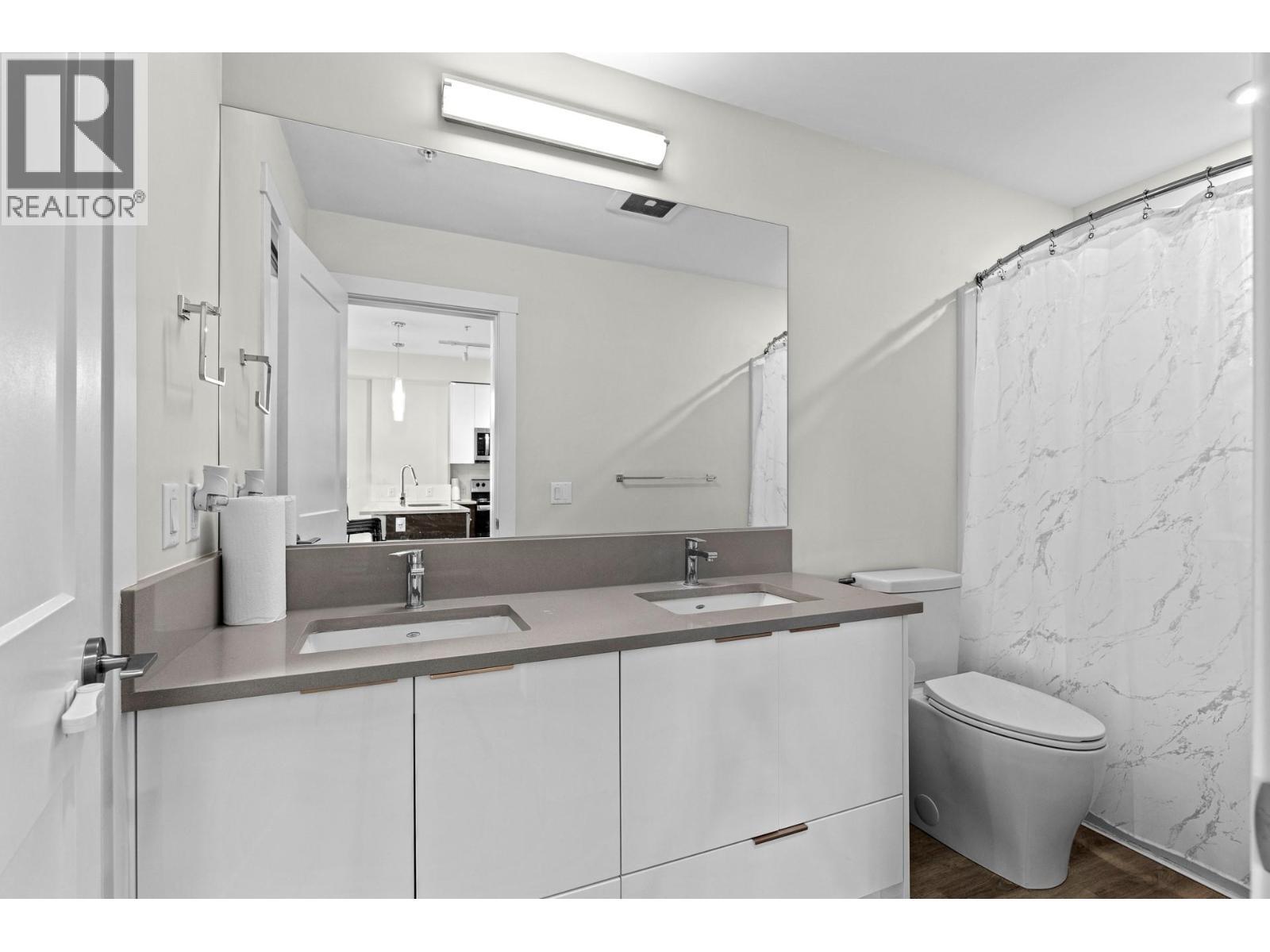 Introducing a well maintained top floor unit in the SoHo building with a functional and well-planned layout. The bedrooms are positioned on opposite sides of the unit, adding flexibility for roommates, guests, or a home office setup. The primary bedroom features a spacious ensuite with double sinks. The kitchen and bathroom are finished with quartz countertops and undermount sinks, giving the home a clean and modern feel. Engineered vinyl plank flooring runs throughout the unit, offering both durability and easy maintenance. Enjoy the spacious patio surrounded with translucent glass for added privacy. SoHo offers a fitness room, meeting room and courtyard. This unit comes with 1 under ground parking stall and a storage locker. Conveniently located close to shopping, restaurants, and everyday amenities, this centrally located unit offers comfortable and practical condo living. Book your showings today! (id:6769)