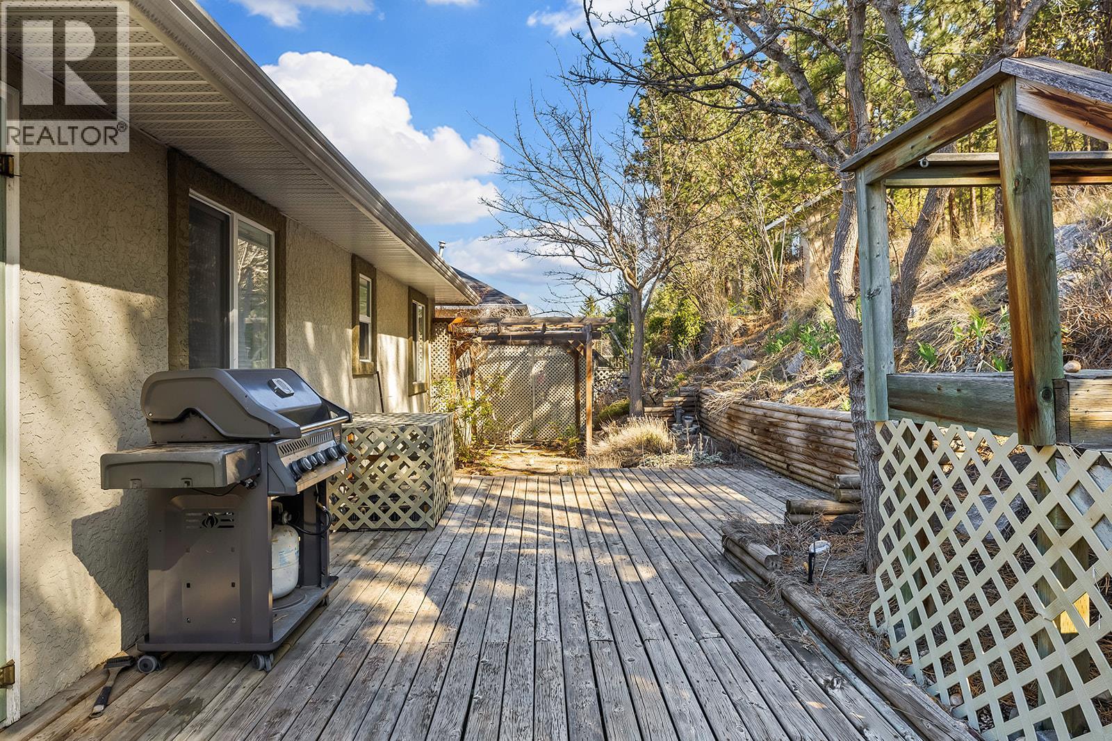 Tucked away at the end of Rio Drive South in a quiet cul-de-sac, this beautifully situated home backs directly onto parkland with access to scenic nature trails and Knox Mountain Park. Offering a bright and open-concept layout, this property features 3 bedrooms plus a den (easily a 4th bedroom), with vaulted ceilings and an abundance of natural light throughout. The main living area is warm and inviting with a cozy gas fireplace, while the kitchen is designed for both function and entertaining, complete with an island and eating bar. The spacious primary bedroom includes charming garden doors leading to the expansive front deck, perfect for enjoying your morning coffee or evening sunsets. The lower level offers a comfortable family room and a generously sized office space, ideal for working from home. Step outside to a low-maintenance yard that seamlessly connects to nearby hiking and biking trails. Additional highlights include a double car garage, ample extra parking with room for an RV, and a sought-after Glenmore location close to schools, shopping, dining, and everyday amenities. A perfect blend of comfort, convenience, and outdoor lifestyle! (id:6769)